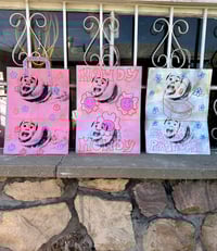 about 12x15. Spray painted paper grocery bags with drawings and screen print designed by Marena Skinner. Great wall piece to hang freely or framed!