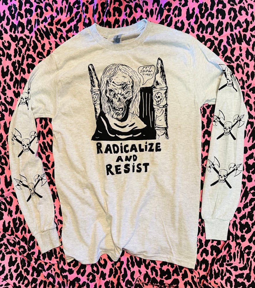 Printed on ash grey gildan heavy cotton long sleeves with water based black ink. Because I do everything myself from home, sometimes there are little imperfections differing from the main image. Shirt may shrink in the wash.